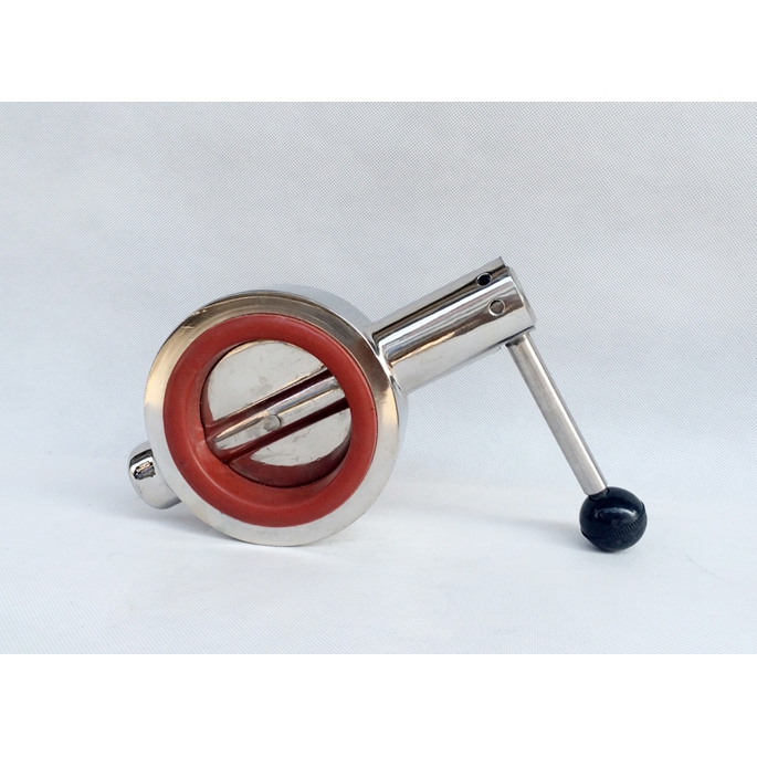 產(chǎn)品說明D71X衛(wèi)生級對夾蝶閥專用于乳制品、食品、制藥、啤酒、化妝品等工業(yè)領(lǐng)域。衛(wèi)生級對夾蝶閥是用圓形蝶板作啟閉件并隨閥桿轉(zhuǎn)動來開啟、關(guān)閉和調(diào)節(jié)流體通道的一種不銹鋼閥門。所有衛(wèi)生蝶閥與介質(zhì)接觸部份均為鏡面拋光處理。產(chǎn)品優(yōu)點1 、蝶閥橡膠密封圈與閥板均采用進(jìn)口件,保證了蝶閥的使用性能和使用壽命;2 、采用高精度數(shù)控車床精車閥體,保證了蝶閥可靠的互換性,免去了因更換橡膠而不能保證其使用性能的麻煩; 3 、閥桿鑲裝尼龍軸套,減小了磨擦力因而開啟靈活輕松; 4 、鋼件均采用不銹鋼制作,橡膠采用食品橡膠,衛(wèi)生質(zhì)量高; 5 、閥體通徑與管道內(nèi)徑等徑,開啟時窄而呈流線型的閥板與流體方向一致,流量大而阻力小,無物料積聚; 6 、手柄采用扳動式和拉動式,可承受較大操作力矩,不易扳斷; 7 、開閉范圍為0~90°,可固定于每隔15°的位置上,具有可調(diào)性,且開閉迅速,操作方便; 8 、閥體均采用可拆連接,結(jié)構(gòu)簡單,維修方便; 9 、造型輕巧美觀,表面光亮而不粘塵,無毛刺扎手; 10 、經(jīng)過嚴(yán)密的強度和密封試驗,保證質(zhì)量。 外形結(jié)構(gòu)圖![]() 主要外形尺寸