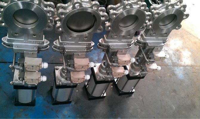 產(chǎn)品說(shuō)明PZ673H/PZ673X氣動(dòng)刀形閘閥其應(yīng)用范圍非常廣泛,從礦山、電廠的選煤、排矸、排渣,到城市的污水處理;從水泥、造紙廠的漿液輸送,到食品、衛(wèi)生、醫(yī)藥等專業(yè)管道。超薄設(shè)計(jì)的刀型閘閥以其體積小、重量輕、阻流小、不積渣,易安裝,易拆卸的優(yōu)點(diǎn)徹底解決了普通閘閥、平板閘閥、球閥、截止閥、調(diào)節(jié)閥、蝶閥等閥門(mén)的阻流大,占空間,易積渣,不易安裝和維修等疑難問(wèn)題。因而大量的通用切斷類閥和調(diào)節(jié)型閥門(mén)被刀型閘閥取代。產(chǎn)品概述氣動(dòng)刀形閘閥通過(guò)配用電磁閥、接近開(kāi)關(guān)等附件可以完成開(kāi)、關(guān)兩位置的動(dòng)作控制和信號(hào)輸出,也可以完成連續(xù)動(dòng)作的自動(dòng)控制。用戶可根據(jù)實(shí)際需要進(jìn)行選擇。廣泛應(yīng)用于化工、煤碳、制糖、污水、造紙等領(lǐng)域,是一種理想的密封閥門(mén)。特別適合于造紙行業(yè)在管道上作調(diào)節(jié)和節(jié)流使用。技術(shù)范圍公稱壓力:0.6MPa、1.0MPa、1.6MPa、2.5MPa、150LB公稱通徑:DN50mm~DN2000mm NPS 2"~80" 適用溫度:-38℃~1100℃(具體溫度范圍視密封副材質(zhì)和介質(zhì)性質(zhì)而定) 連接法蘭:ANSI B16.5、GB/T9113、JB/T79、HG、SH、JIS、DIN、NF、BS 主體材料:C.I、WCB、ZG1Cr18Ni9Ti、ZG1Cr18Ni12Mo2Ti、CF8、CF8M、CF3、CF3M、2Cr25Ni20 密封形式:硬密封、軟密封 泄 漏 量:硬密封:D級(jí)(液體0.1×DNmm3/s);軟密封:A級(jí)(零泄漏) 配套附件:安裝法蘭 可選附件1、單或雙控電磁閥(有24V、220V等電壓供選擇,必要時(shí)可選防爆電磁閥)2、接近開(kāi)關(guān) 3、氣源處理三聯(lián)件(包括減壓閥、過(guò)濾器、油霧器) 4、電/氣閥門(mén)定位器(調(diào)節(jié)型用) 主要零部件材質(zhì)Key parts material
